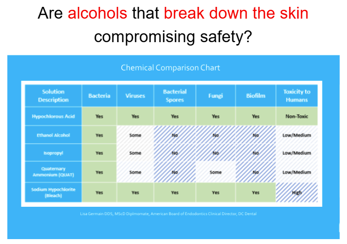 HOCl is known to be more effective and safer than alcohol. It is also effective against bacteria, fungi, and enveloped and non-enveloped viruses. While we have not conducted norovirus (non-enveloped virus) efficacy testing using our FDA-cleared solution, adenovirus is a comparable non-enveloped virus.
